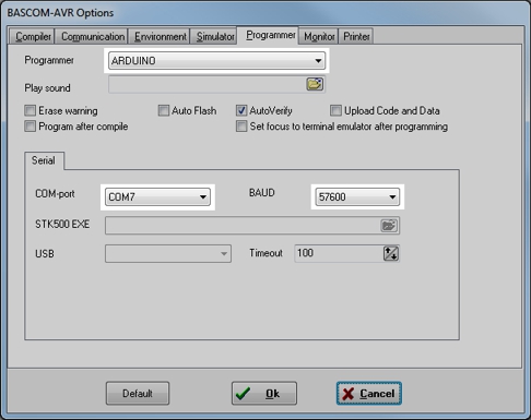 Ich empfehle jedes mal, wenn Sie Bascom neu öffnen oder den Arduino vom USB-Port
